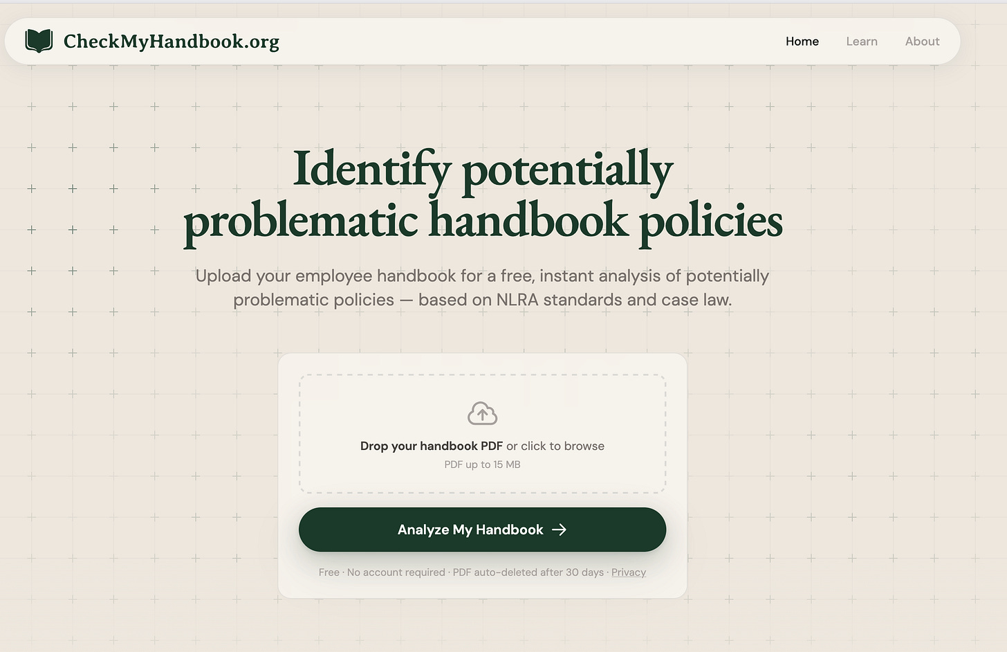Earlier this month, Citizen Computing launched CheckMyHandbook.com, a website where you can upload your company’s handbook, your employment agreement, or any other document really to see whether it contains any provisions that might violate the National Labor Relations Act under the Stericycle standard.