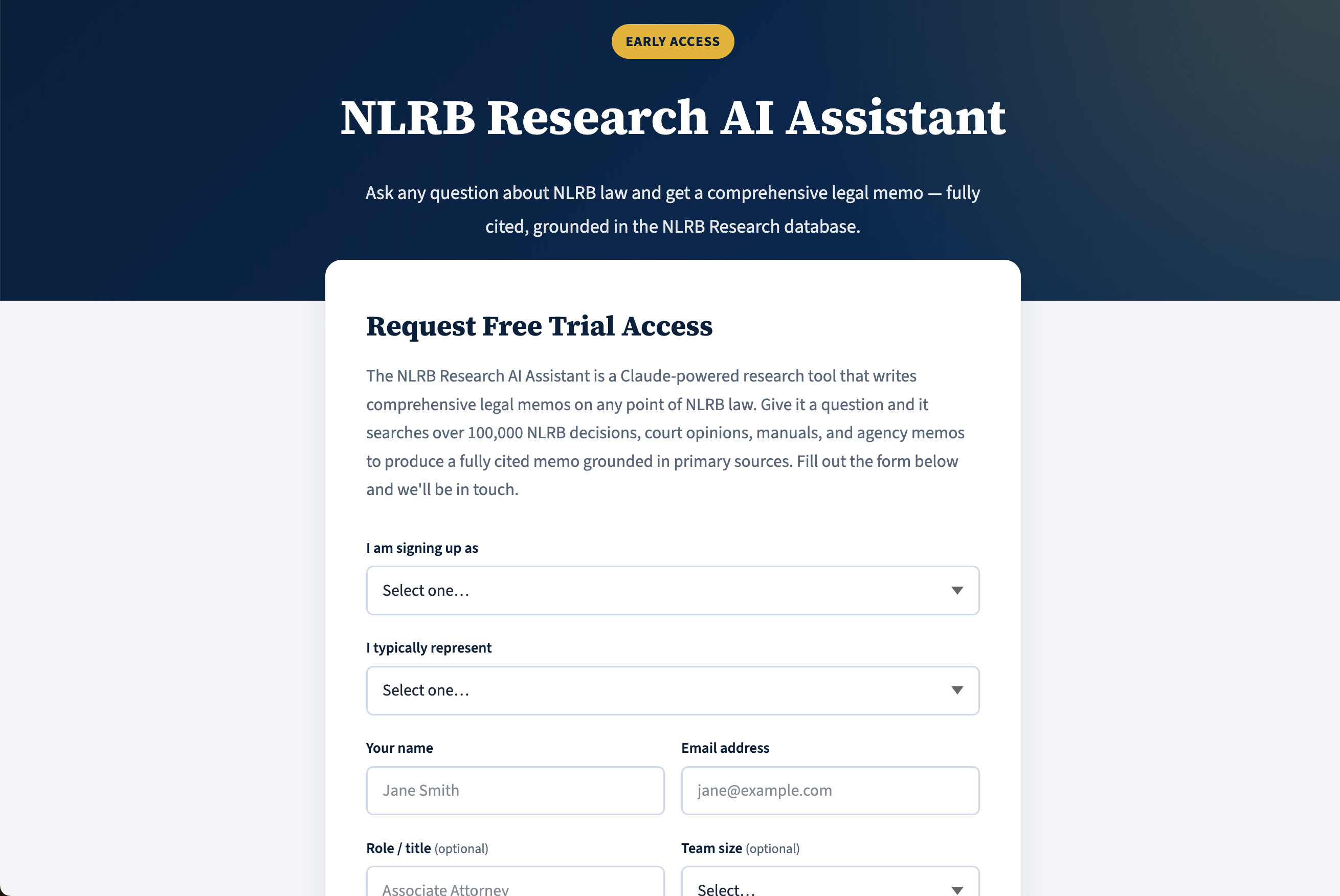 CLICK HERE TO APPLY FOR A FREE TRIAL OF THE NLRB RESEARCH AI ASSISTANT